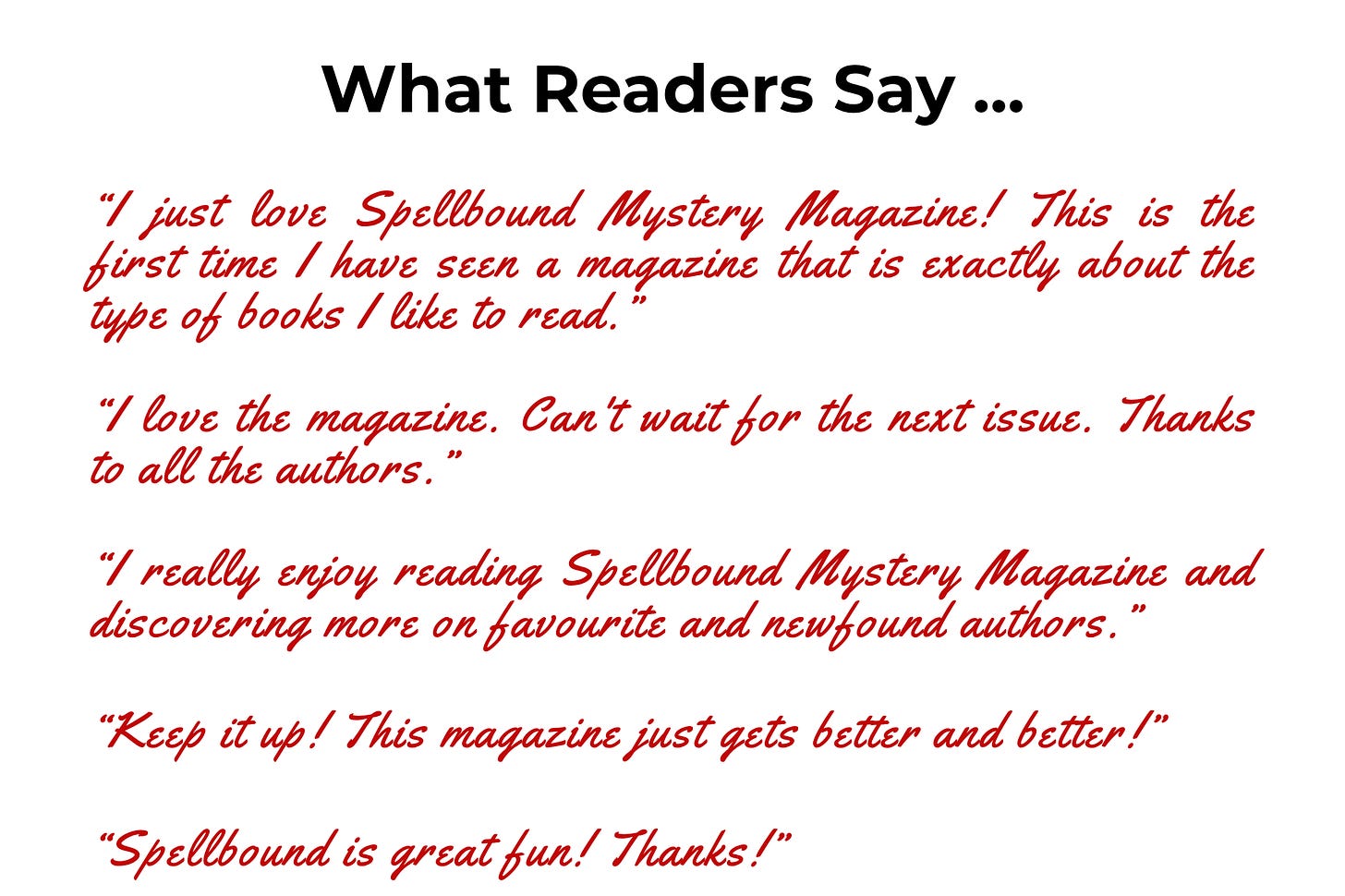 But her real love these days is curating and editing Spellbound Mystery Magazine.